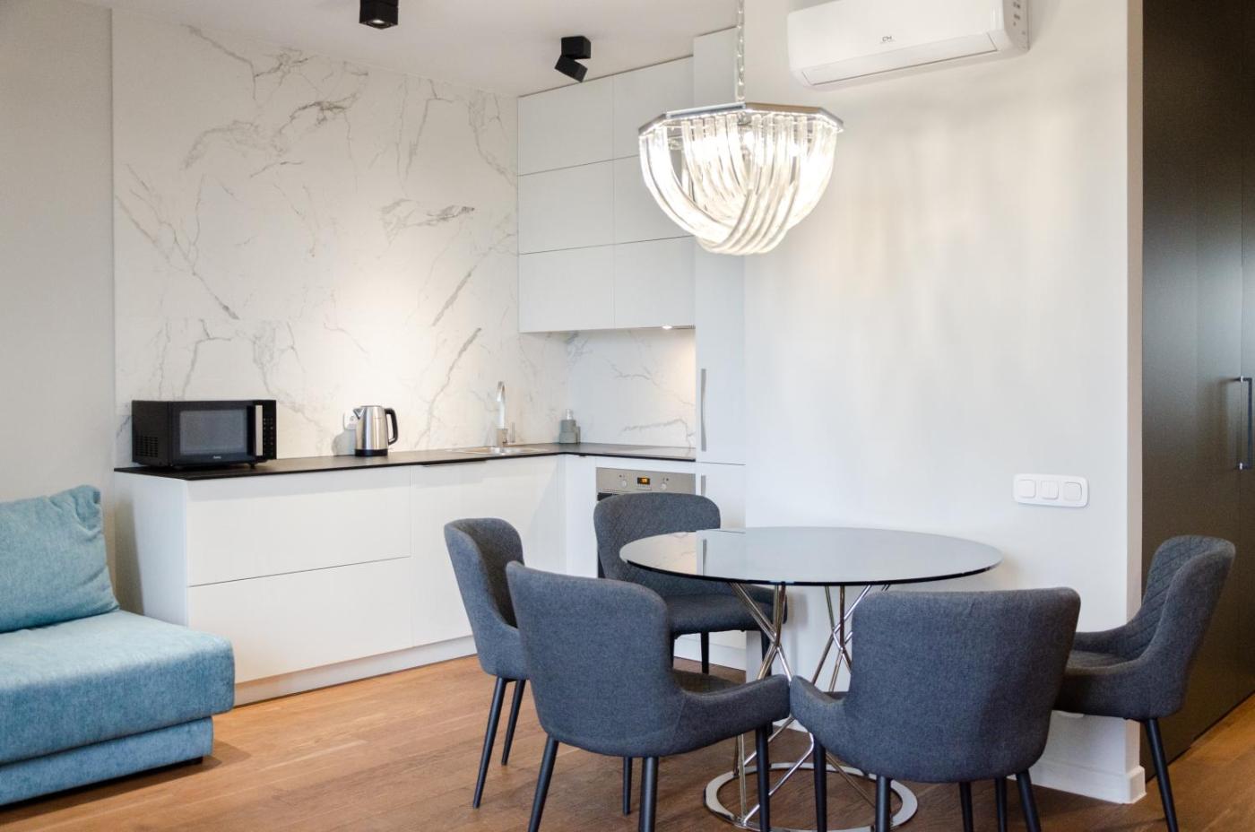 One-Bedroom Apartment. This apartment features 1 living room, 1 separate bedroom and 1 bathroom with a bath and free toiletries. In the kitchen, guests will find a stovetop, a refrigerator, a dishwasher and kitchenware. This apartment is air-conditioned and has a seating area with a flat-screen TV, a washing machine, soundproof walls, a tea and coffee maker, as well as a dining area. The unit has 2 beds.